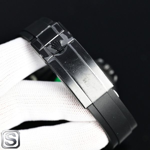 Rolex crown logo micro etched at 6 o'clock on the crystal.