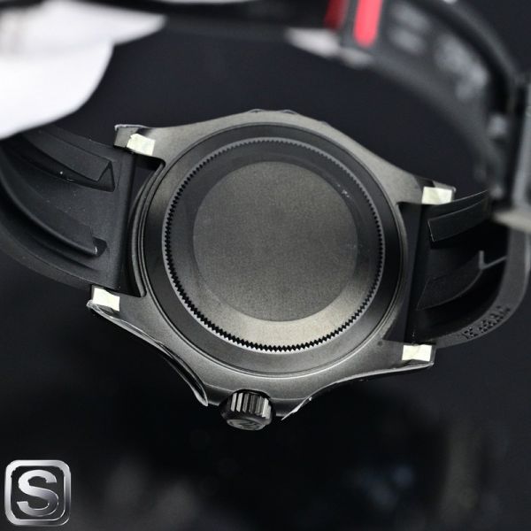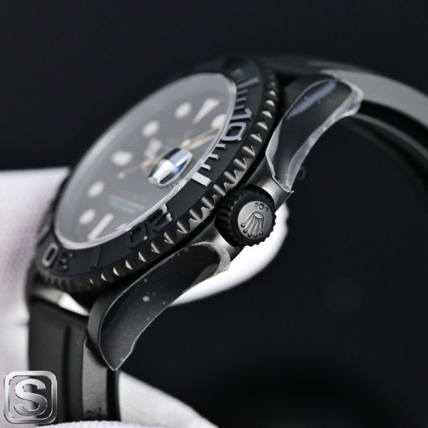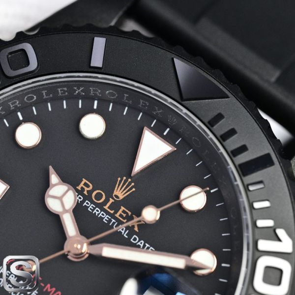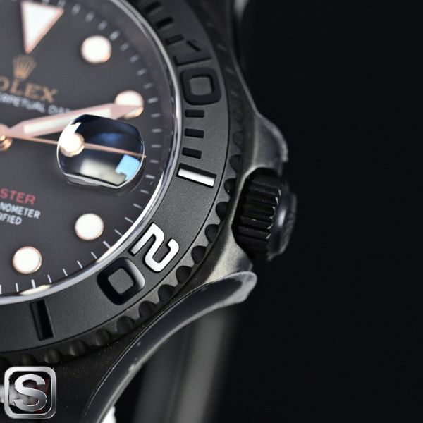 This BLAKEN-customized Rolex Yacht-Master watch is based on the classic 126655 design, featuring a black dial and rose gold hands for an understated yet luxurious look.