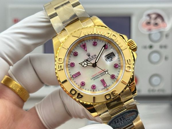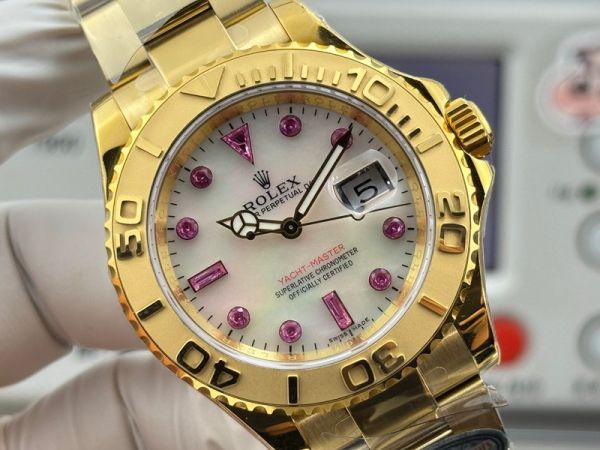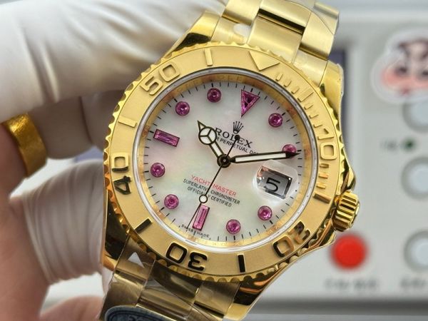Rolex Yacht-Master 40mm 3235 Movement Yellow Gold Strap Pink Gem Markers Watch