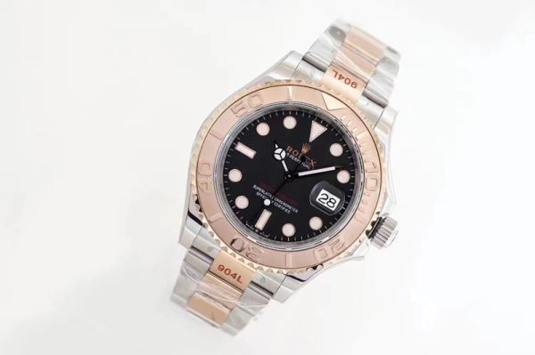 Rolex Yacht-Master 40mm 3235 Movement 904L Steel Black Face Blue Lume TT Rose Gold Oyster Strap Watch