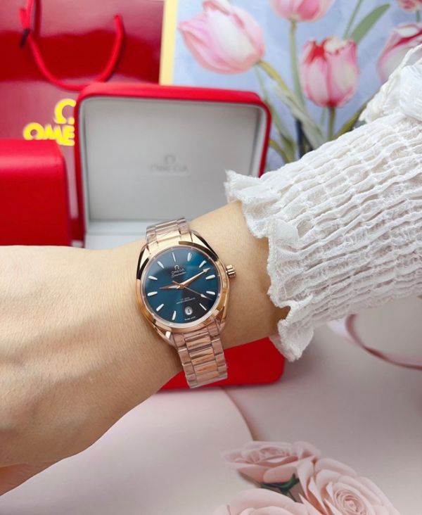 Best Edition With Swiss Quartz Movement Omega Seamaster Aqua Terra 150m Rose Gold Stainless Steel Bracelet Watch