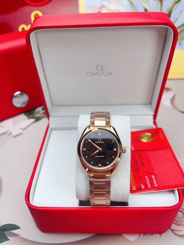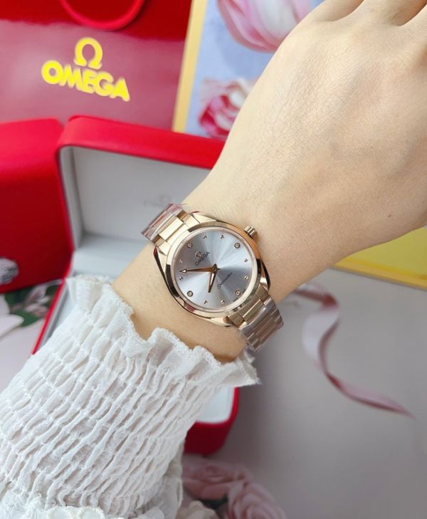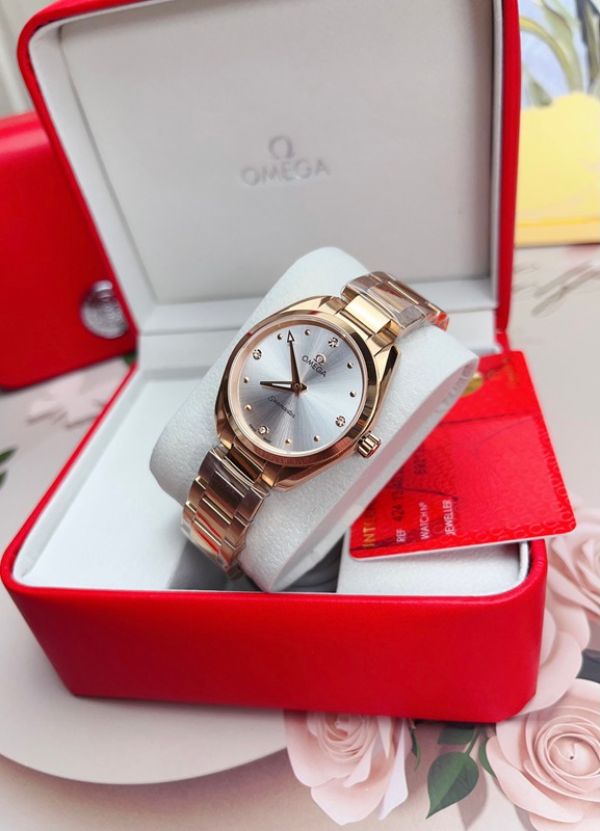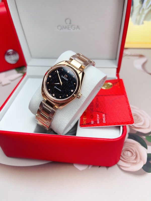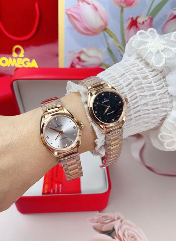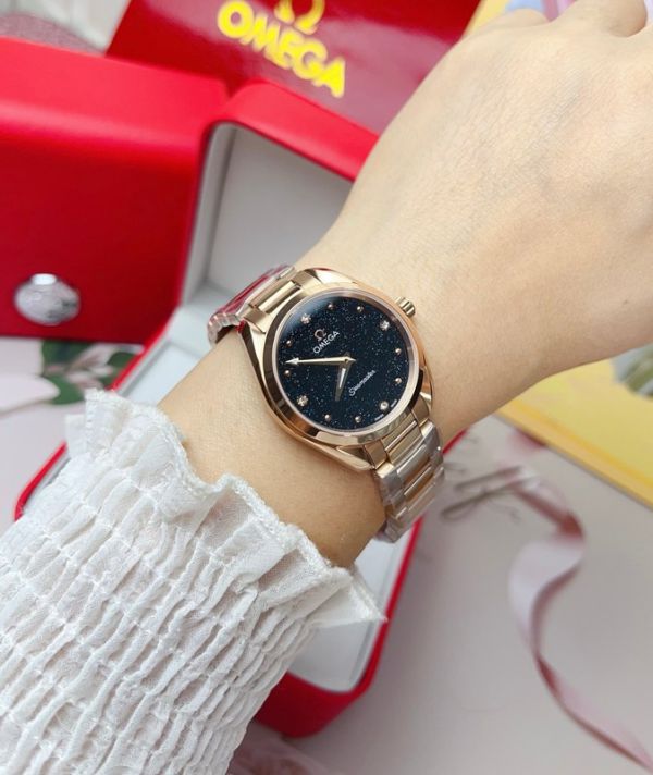 Best Edition With Swiss Quartz Movement Omega Seamaster Aqua Terra 150m Black/Silver Dial Rose Gold Stainless Steel Women Watch