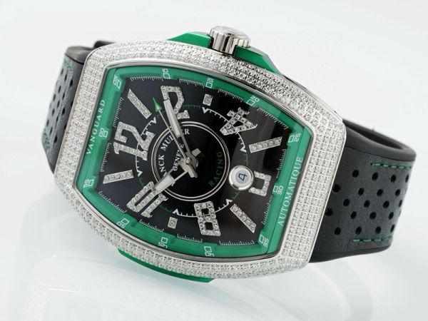 Franck Muller Vanguard Yachting V45 RACING series Silver steel case with White diamonds Diameter 44mm watch