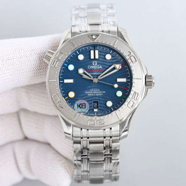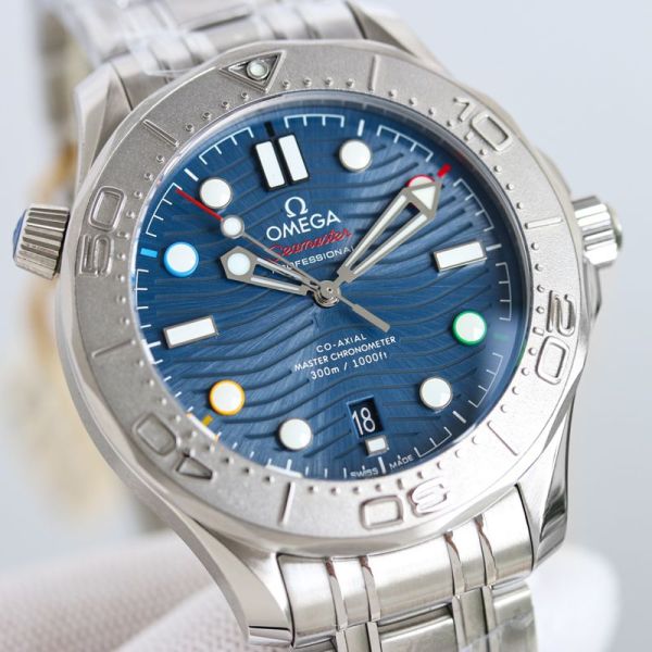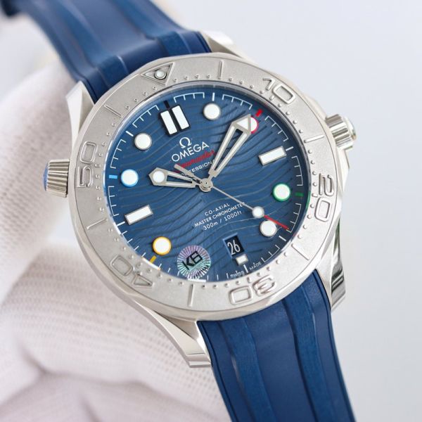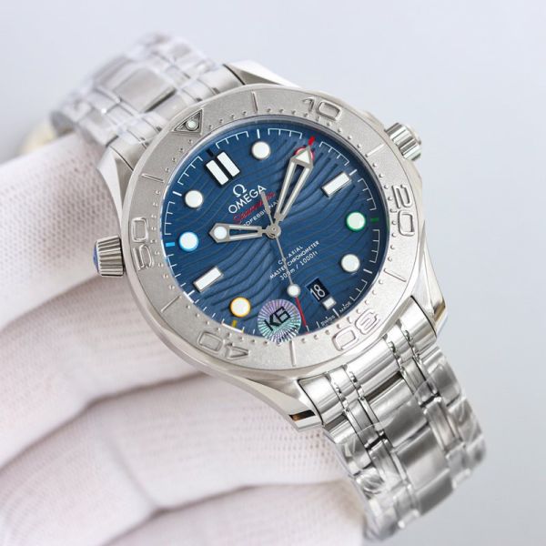 Omega Seamaster Stainless Steel 42MM 8800 Movement Including Free Blue Rubber Bands Watch