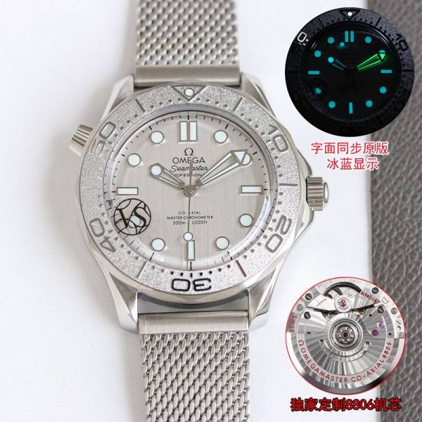 Best Edition With Swiss 8806 Automatic Movement Omega Seamaster Aluminum Bezel Blue Luminous Light Watch