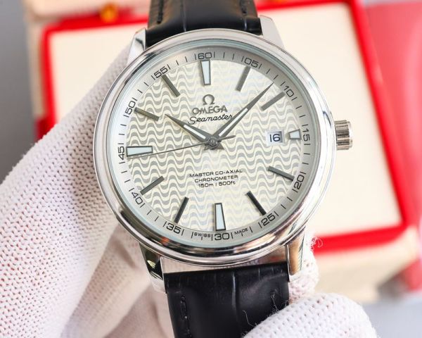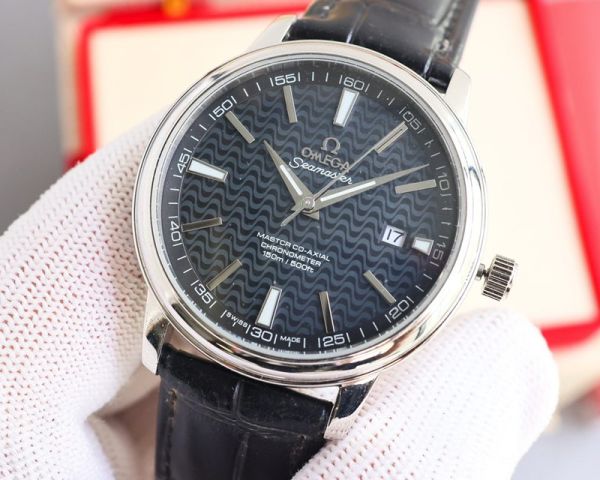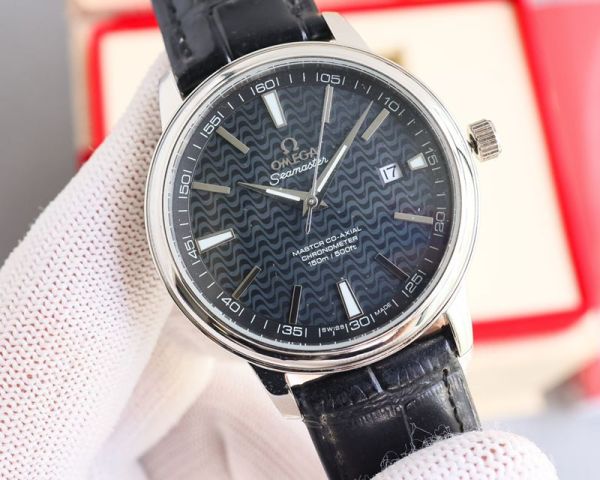 Best Edition With Swiss 8215 Automatic Movement Omega Seamaster Silver Case Imported Calfskin Leather Strap Watch