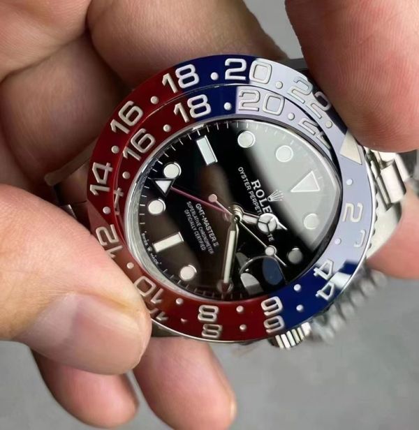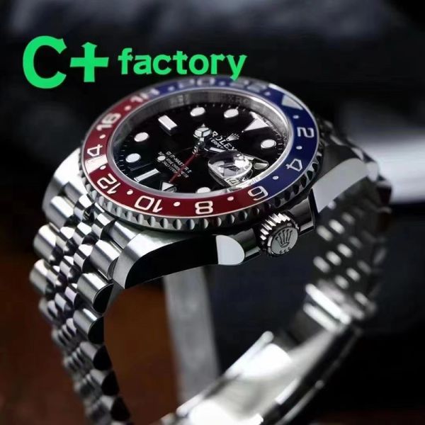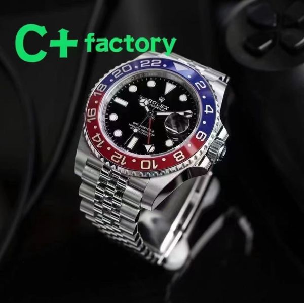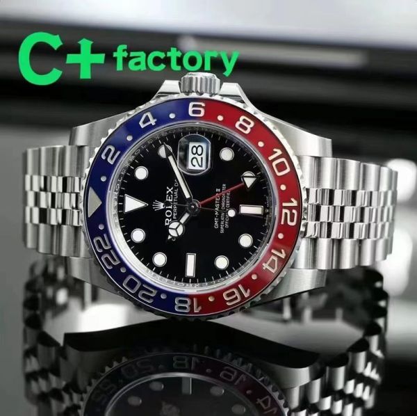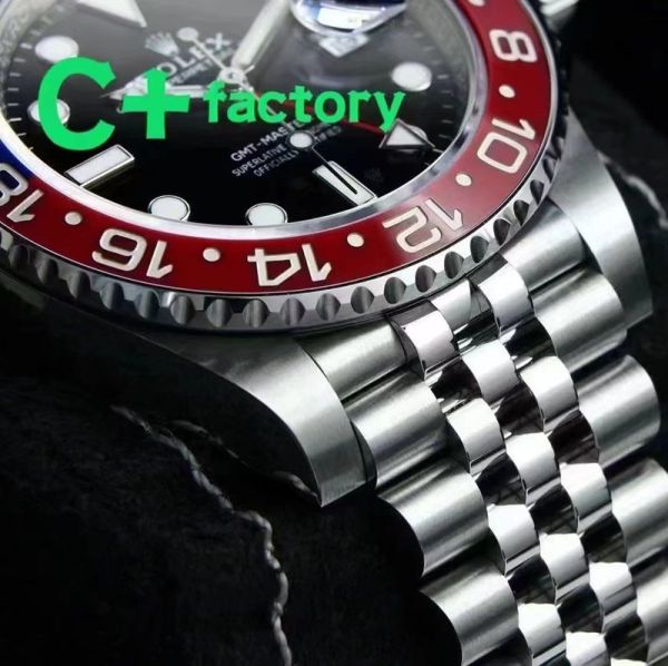 C Factory ROLEX 904L Steel Blue and Red Bezel Watch