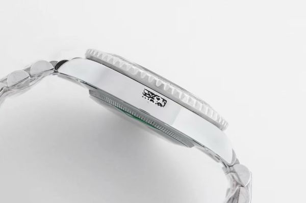 Rolex crown logo micro etched at 6 o'clock on the crystal.
