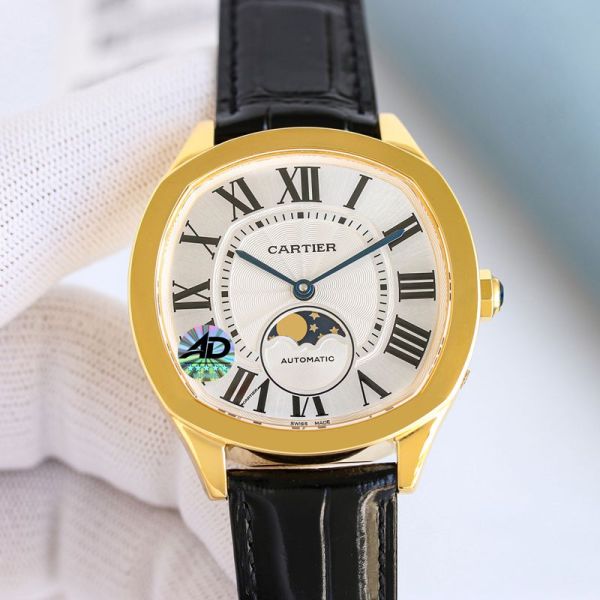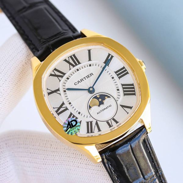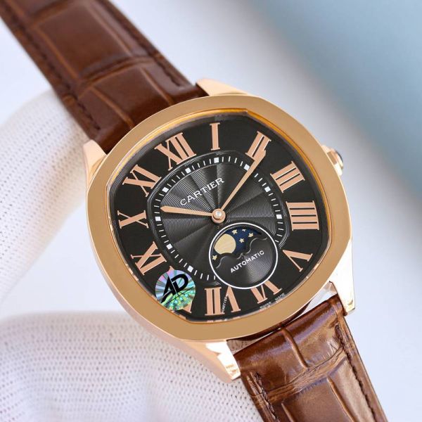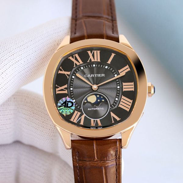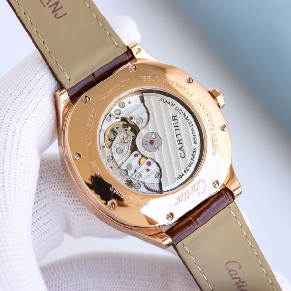 Best Edition With Swiss Cal.1904-PS MC Automatic Movement Cartier Leather Watch Straps Drive De Rose Gold/Gold Case Sapphire Glass Watch