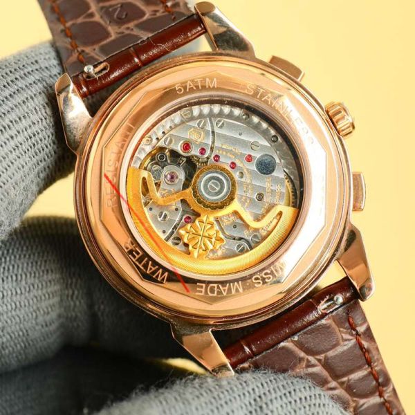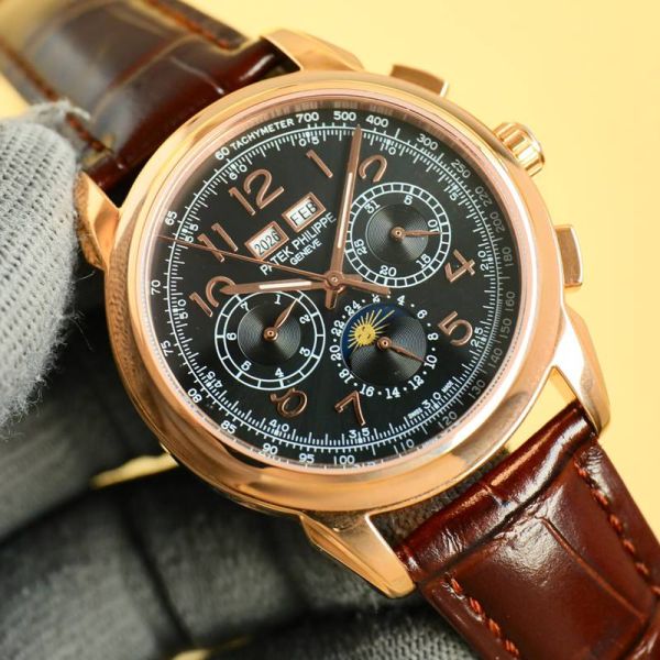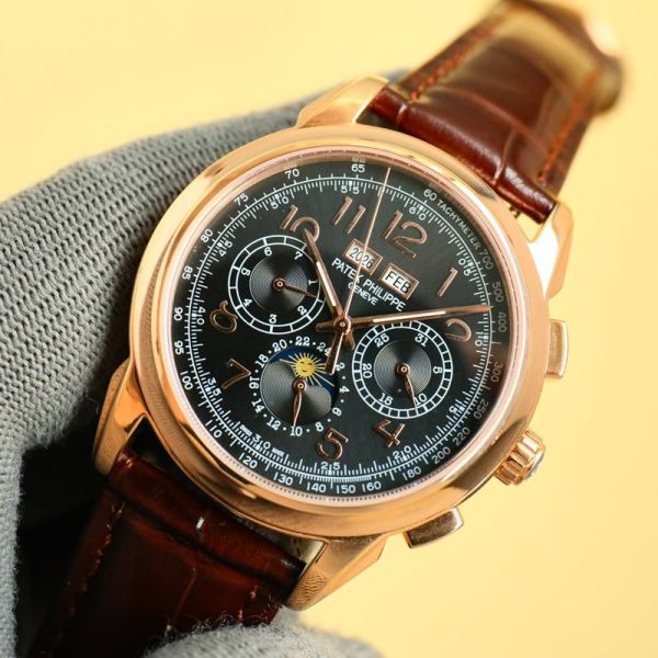 Best Edition with Mechanical Movement Patek Philippe Grand Complications Perpetual Calendar Replica Watch Dark Brown Leather Watch Strap