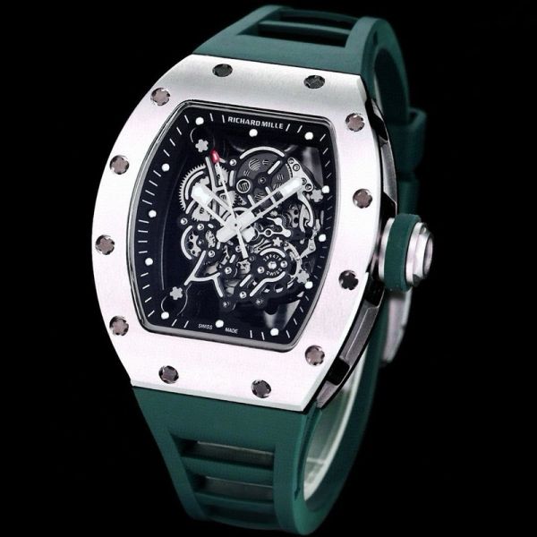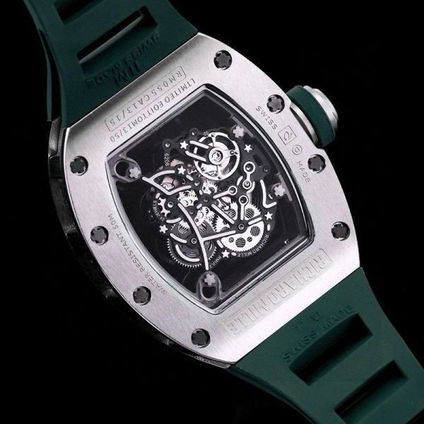 RICHARD MILLE Skeleton Watch Price RM055 Silver stainless steel case Rubber Strap watch