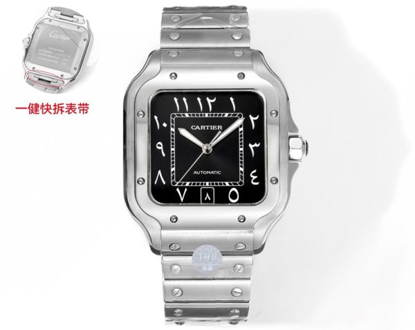 THB Factory Cartier Stainless Steel Bracelet Santos Middle East Version Tape Silver Steel Case Diameter 39.8mm watch
