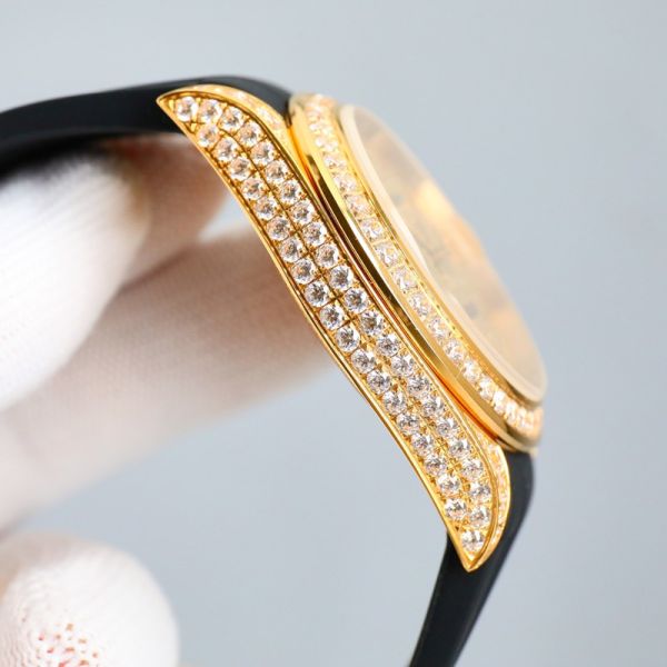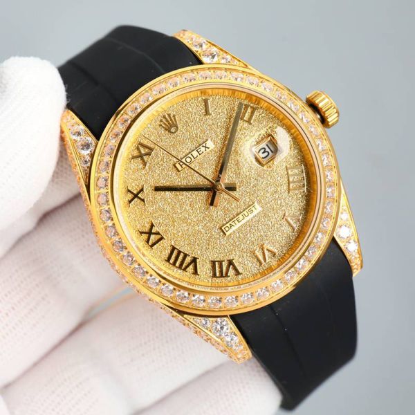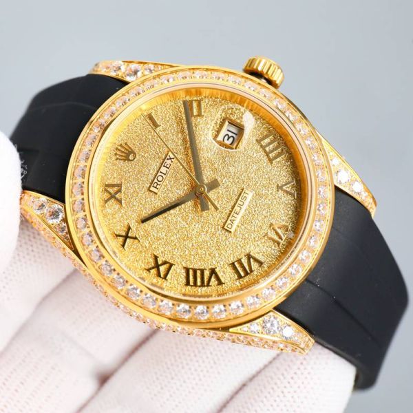 Best Edition With 8200 Automatic Movement Rubber Straps for Rolex Datejust replica swiss Gold Dial Diamond Bezel Watch