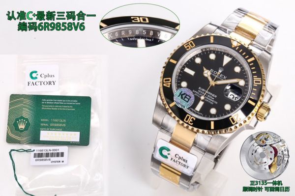 C+ Factory ROLEX Two-Tone Submariner  3135 Black Dial 40MM Trusted Dealers Replica Watch