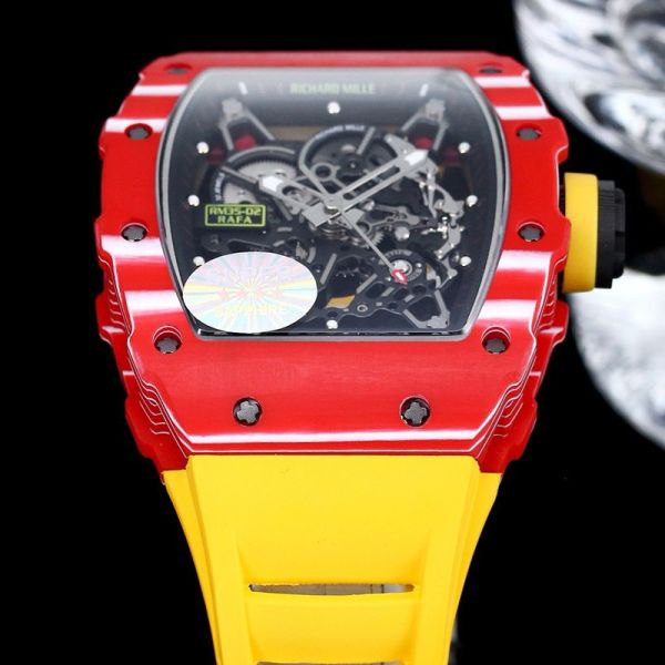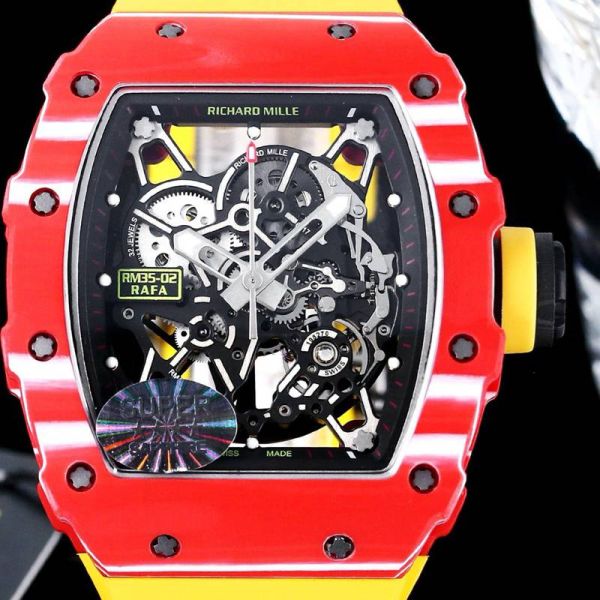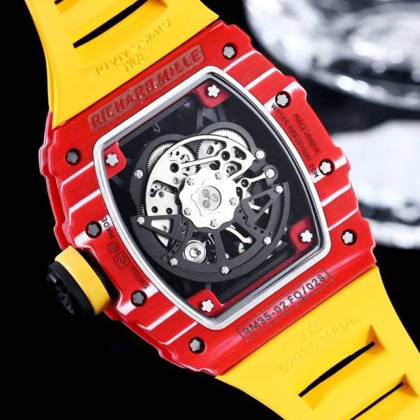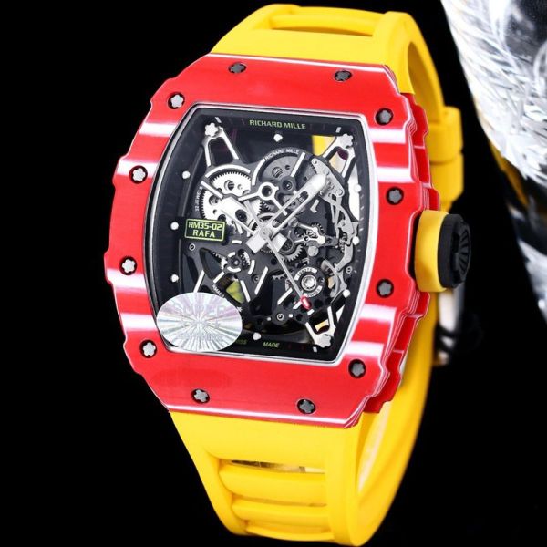 RICHARD MILLE Skeleton Watch RM35-02 Rafael Nadal  Red Quartz Fiber Yellow Rubber Watch