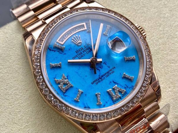8+ Factory Best Edition with 2834 OR 3255 Automatic Movement Rolex Replica diamond bezel Day-Date watch.