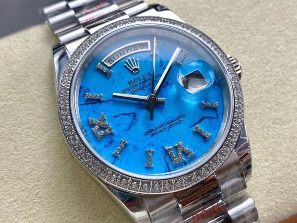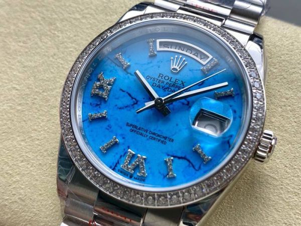 8+ Factory Rolex Day-Date White Gold Replica Silver steel Case White diamond diameter 36mm Watch