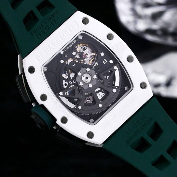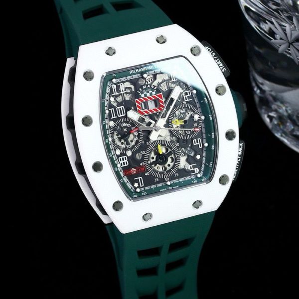 RICHARD MILLE RM011-FM Replica White Ceramic Green Strap Watch