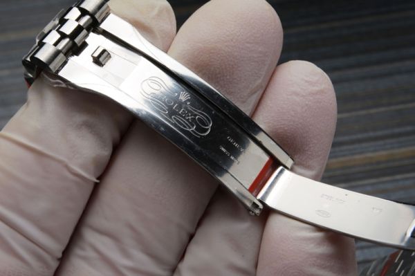 Rolex Crown Logo Micro Etched At 6 O’Clock In The Crystal,Screw Links, Serial Number Between Links. Solid End Links