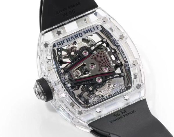 RICHARD MILLE RM38-02 Tourbillon Sapphire Crystal Black Rubber Strap Replica watch