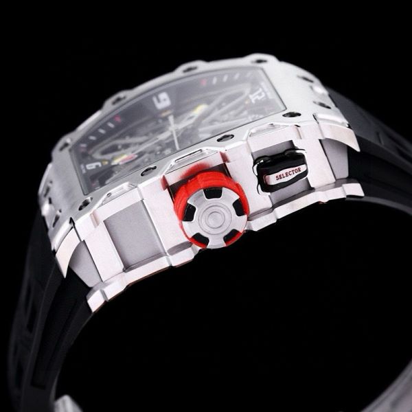 RICHARD MILLE RM35-03 Silver steel Red Rubber Strap Watch