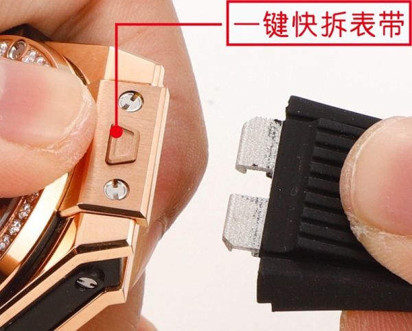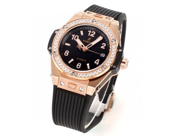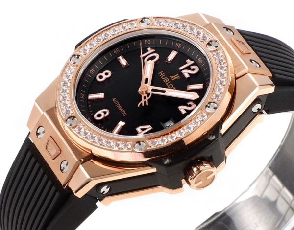 MS Factory Hublot Geneve chronograph black Big Bang Rose gold steel case with White diamond Watch