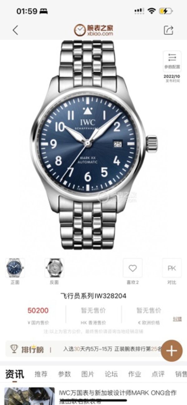 IWC   Pilot  Series ETA2824 Automatic Movement 40mm  Watch