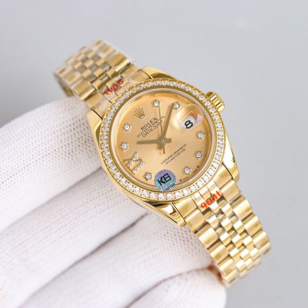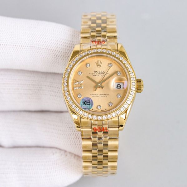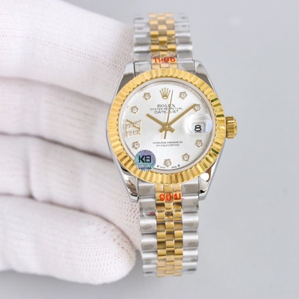 C Factory ROLEX 904L Steel Swiss 2671 Automatic Movement 28MM White Gold Lady Watch