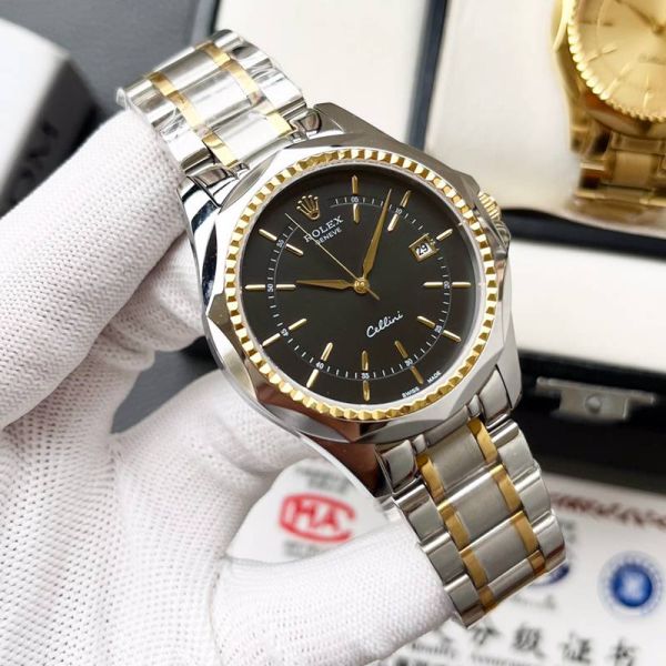 Best Edition With Automatic Movement Rolex Geneve Cellini Replica with Black Dial Stainless Steel Strap Watch