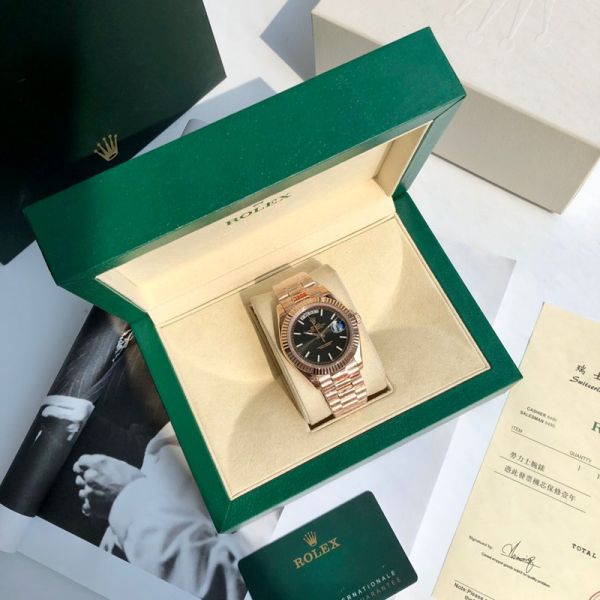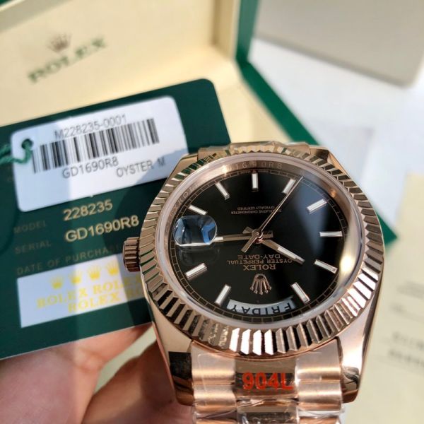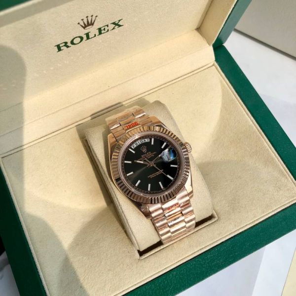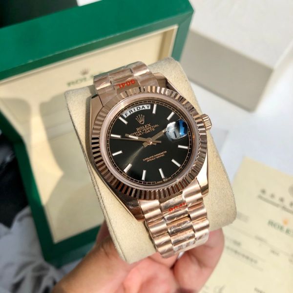 Best Edition With 8205 Automatic Movement Rolex Daydate Rose Gold Black Face41MM Gold Replica Oyster Stainless Steel Watch