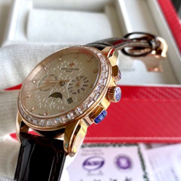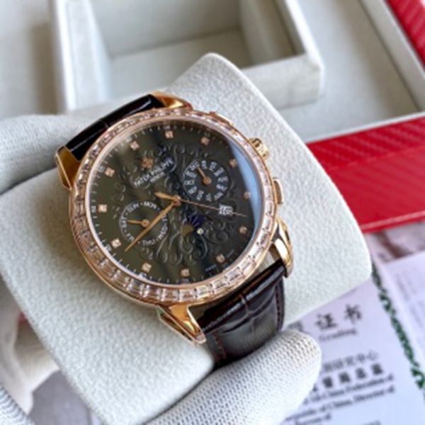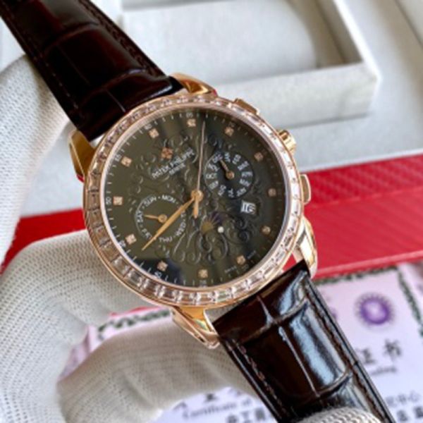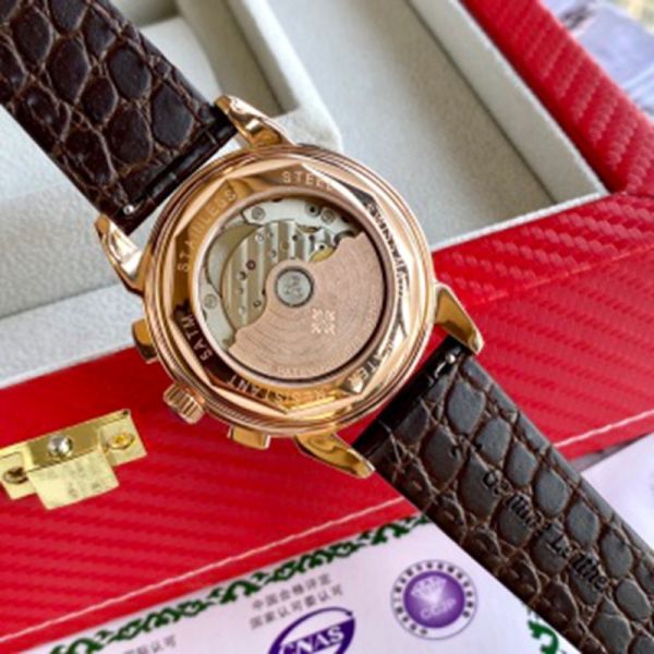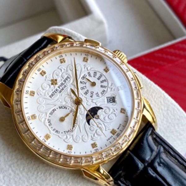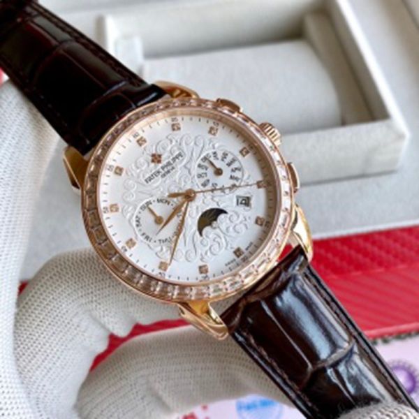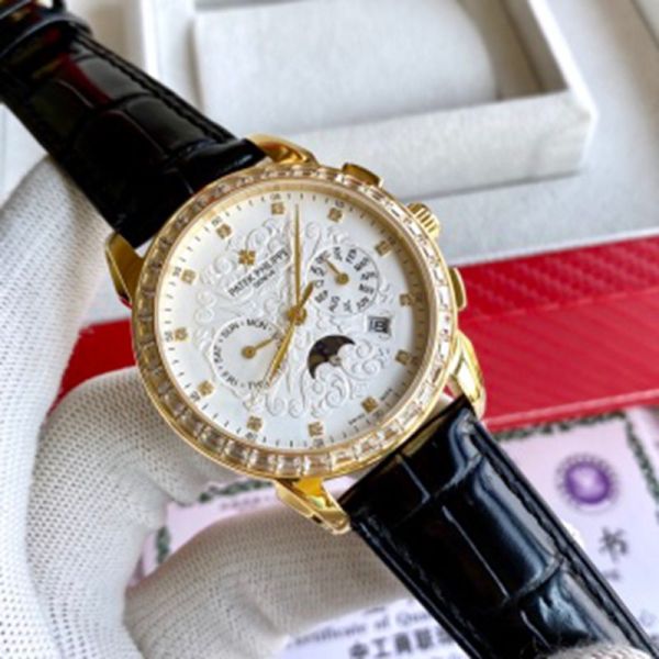 PATEK PHILIPPE 9100 Automatic Movement Cow Leather Style White 42mm Watch