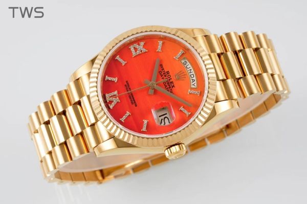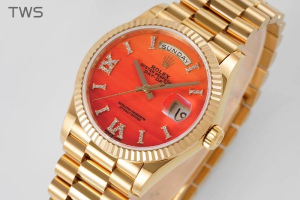 ROLEX Day-date Replica with Gold Case Automatic Movement High Quality Steel 36mm Red Watch