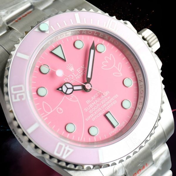 Best Edition With 3135 Automatic Movement Fake Replica Vintage Rolex Submariner Pink Face Watch