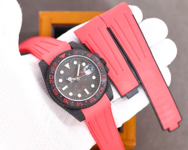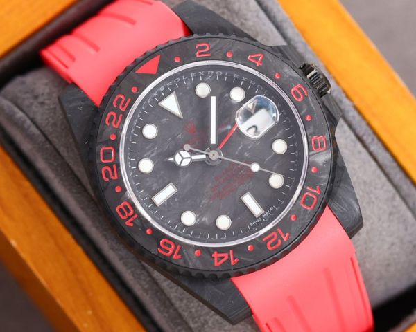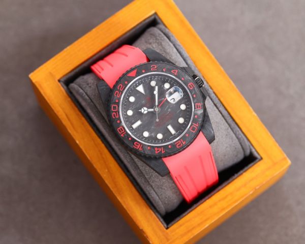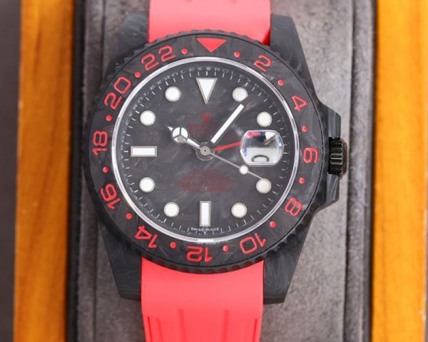 ROLEX GMT-Master II Replica with Rubber Strap 2836 Movement Carbon Fiber Case Red Bracelet Watch