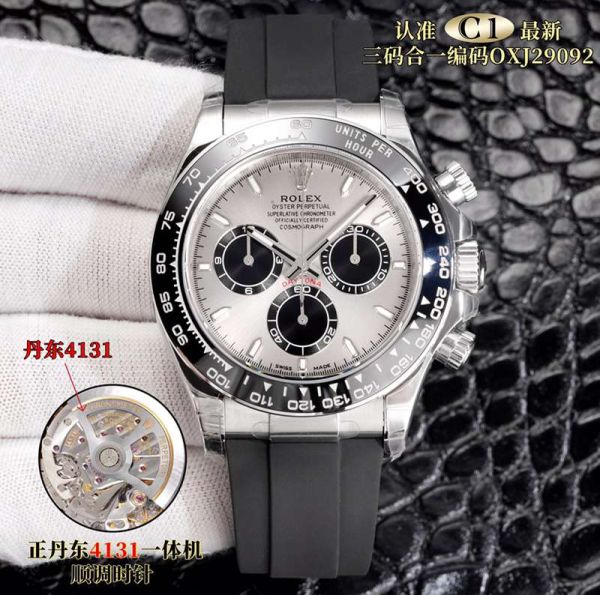 C1 Factory ROLEX Daytona  4131 Movement Grey with Black Top-Graded Watch