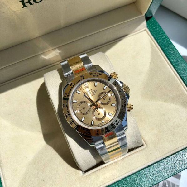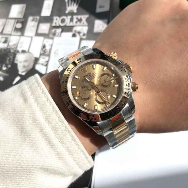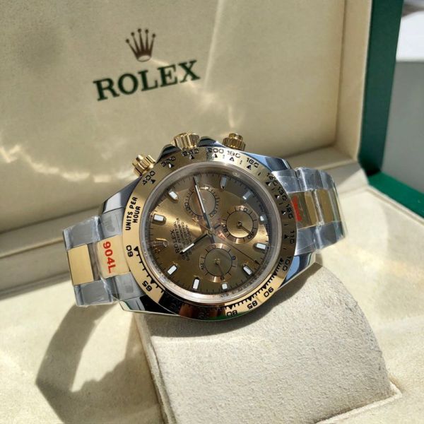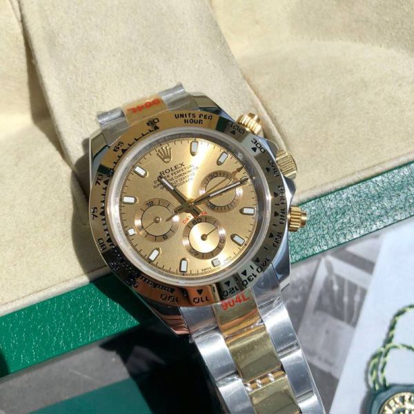 ROLEX Daytona 904L Steel Self-produced Movement Gold Bezel Watch