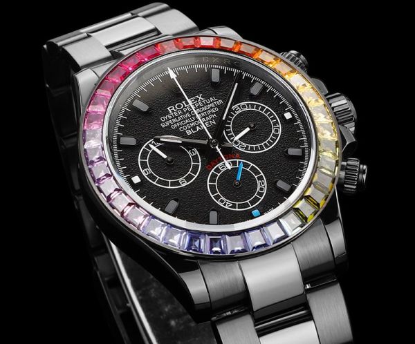 ROLEX Daytona 40*12.3MM 904L Steel 7750 Movement Rainbow Bezel Black Wrist Watch