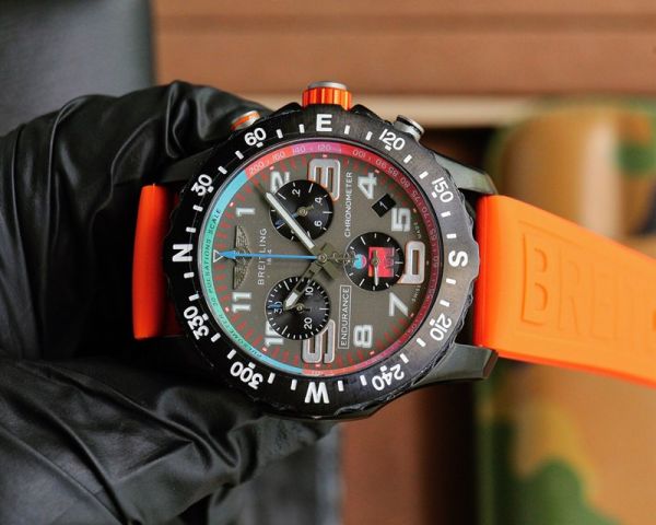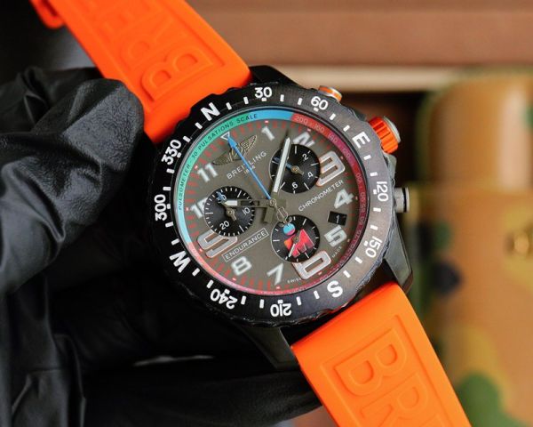 Breitling 44MM in Diameter Quartz Movement Steel Case Orange Bracelet Watch