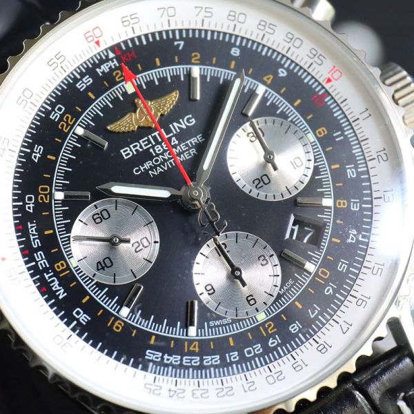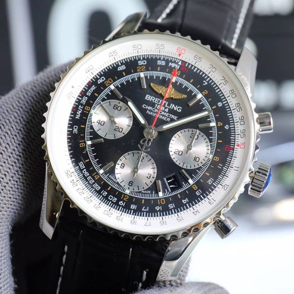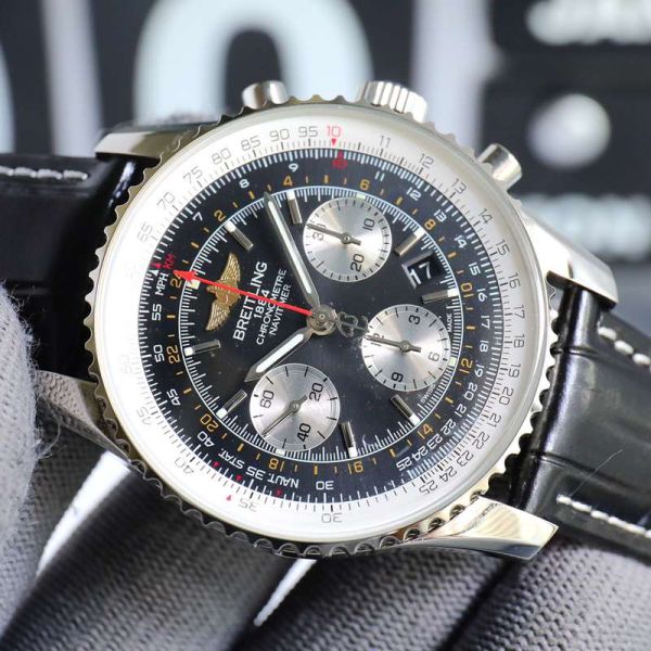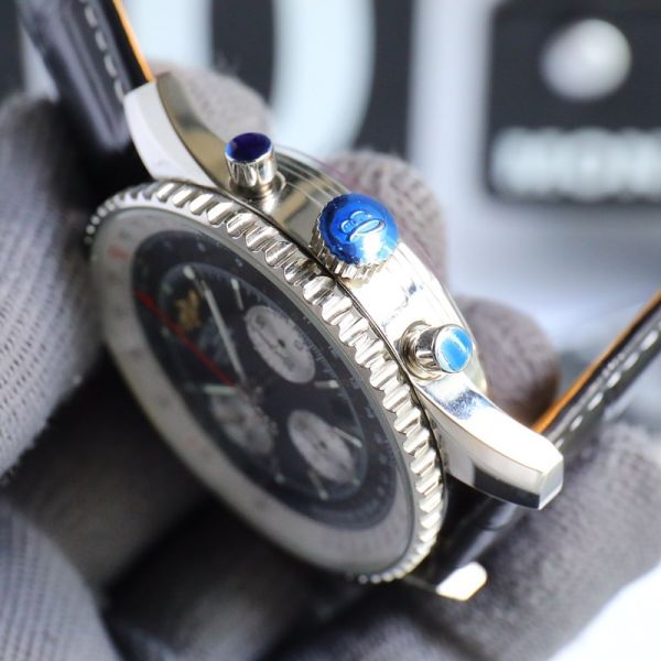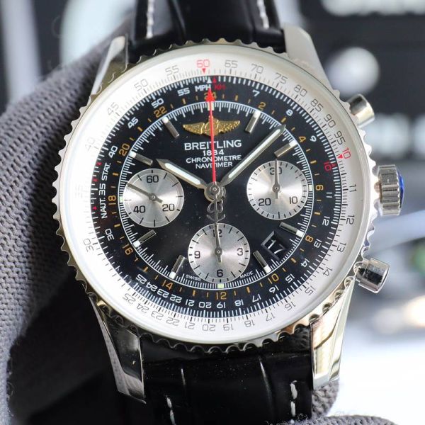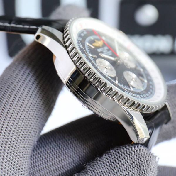 Best Edition With B01 Automatic Movement Breitling Navitimer Clone Black Dial Black Leather Strap Chronograph Watch