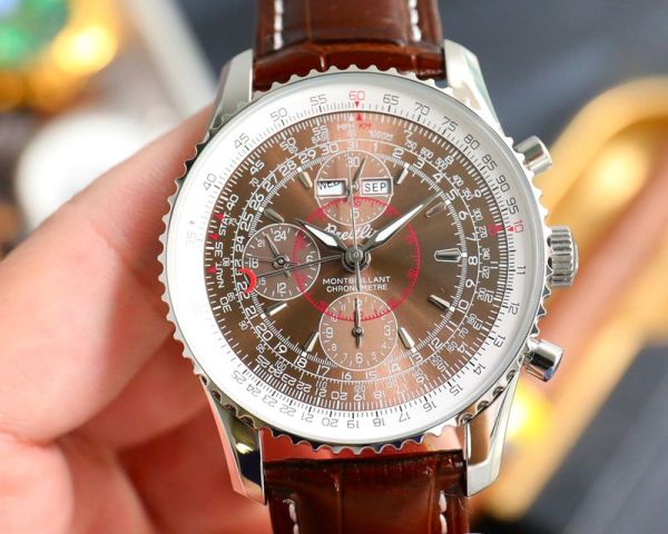 Breitling 43*14.1MM Etc.7751 Movement Steel Italian Cowhide Leather Watch Strap Brown Watch