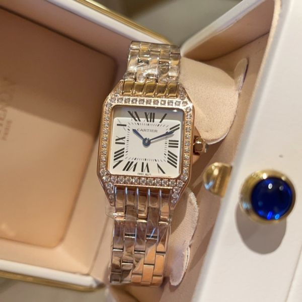 Cartier Stainless Steel 24MM Diamond Bezel Lady Square Watch
