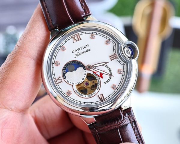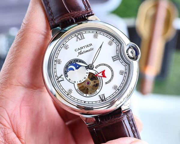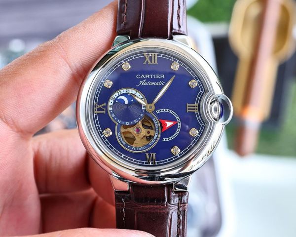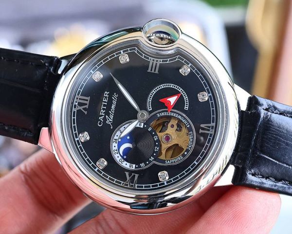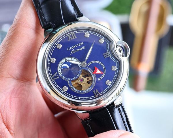 Cartier Stainless Steel Automatic Movement 44*11MM Black/White/Blue Dial Black/Red Bracelet Watch