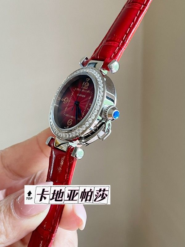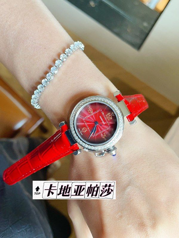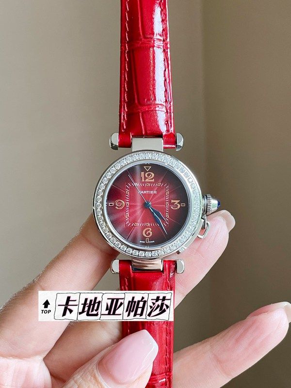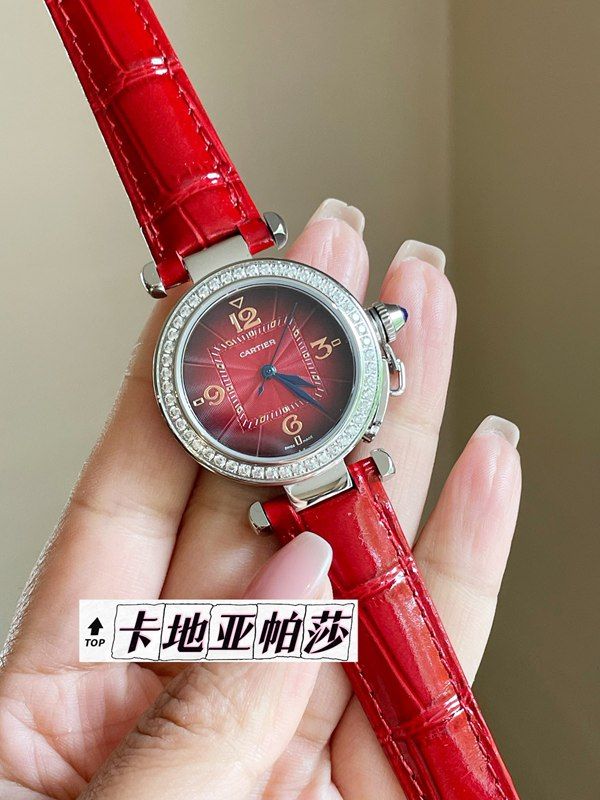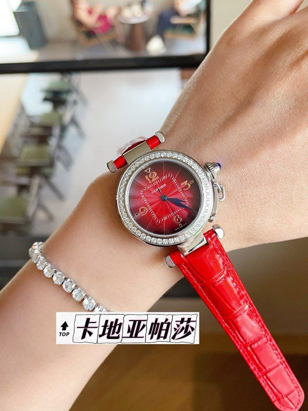 Cartier 35MM in Diameter Stainless Steel Imported Swiss Quartz Movement Women's Red Cartier Watch