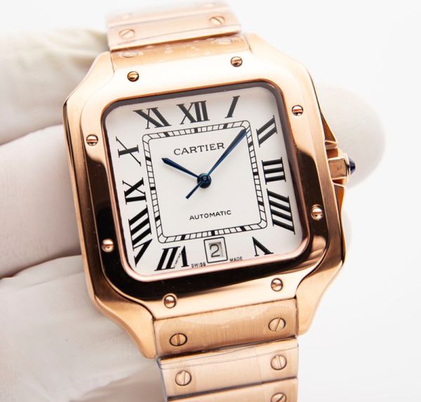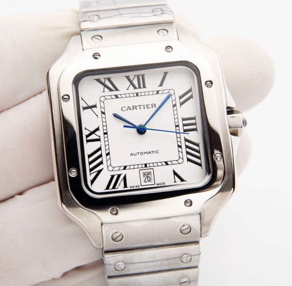 Best Edition With Swiss 8215 Automatic Movement Cartier Santos Blue Hands Men Watch