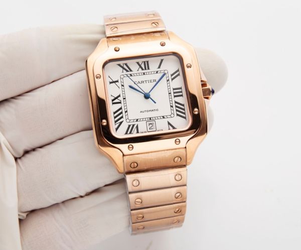 Cartier Santos Stainless Steel Imported 8215 Movement 47.5*39.8MM Silver/Rose Gold Bracelet Men Watch