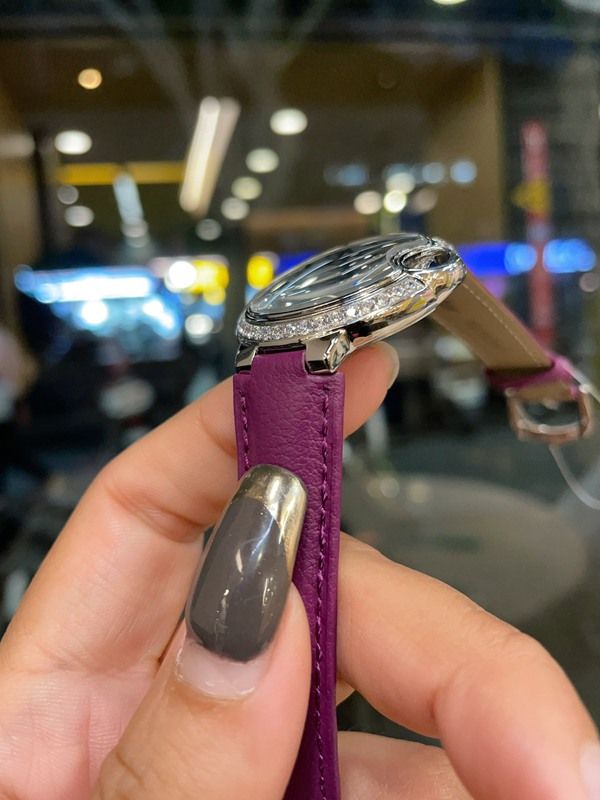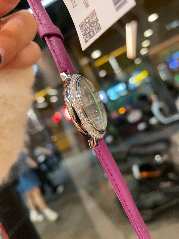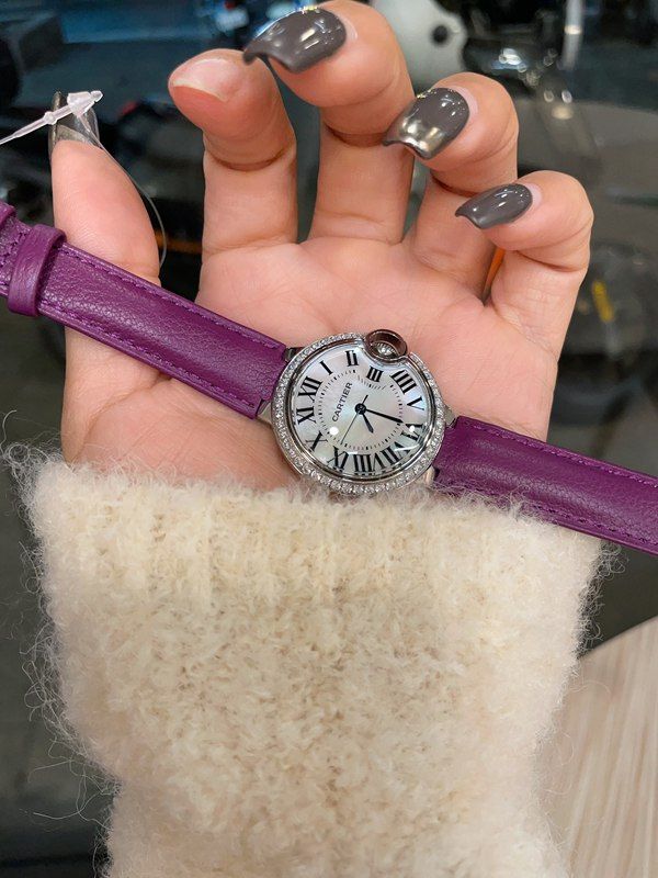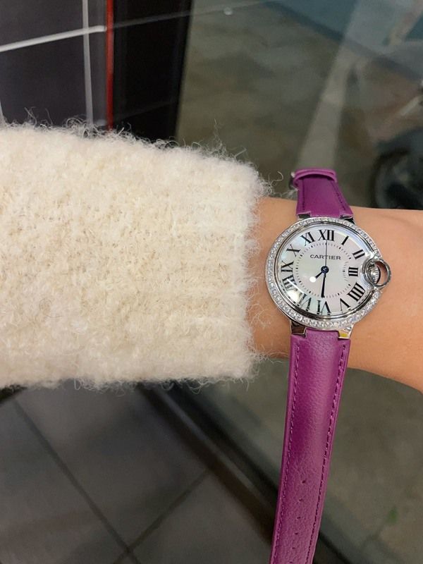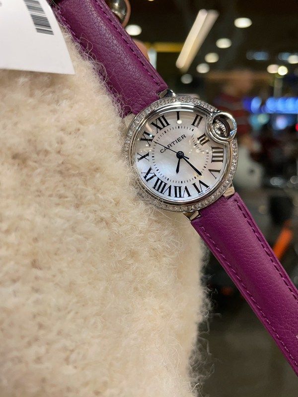 Cartier 33MM Fisheye Glass Swiss Quartz Movement Cawhide Purple Strap Diamond Women Watch