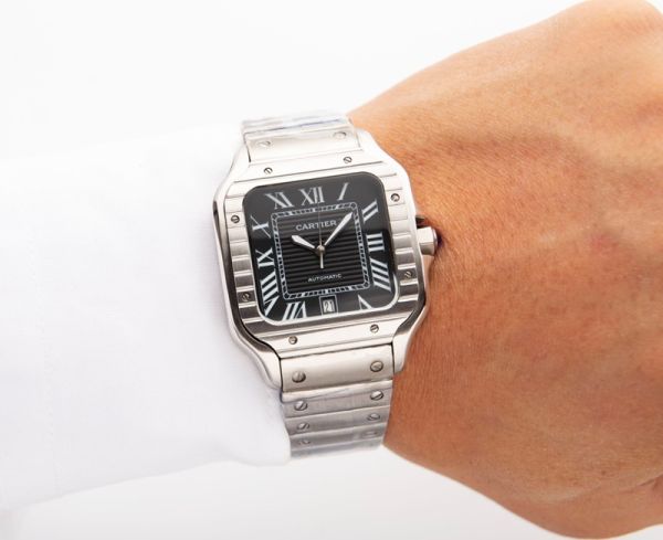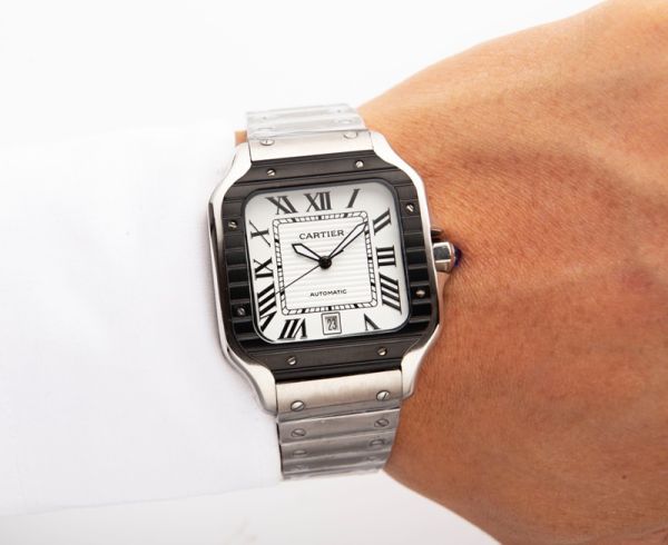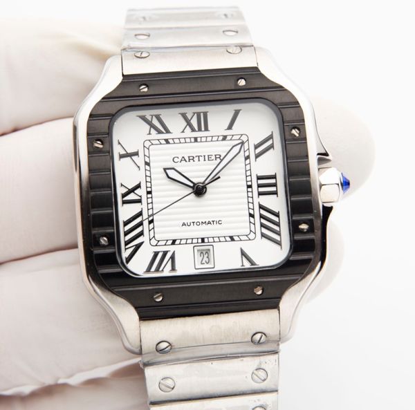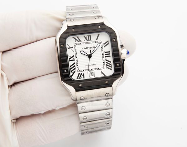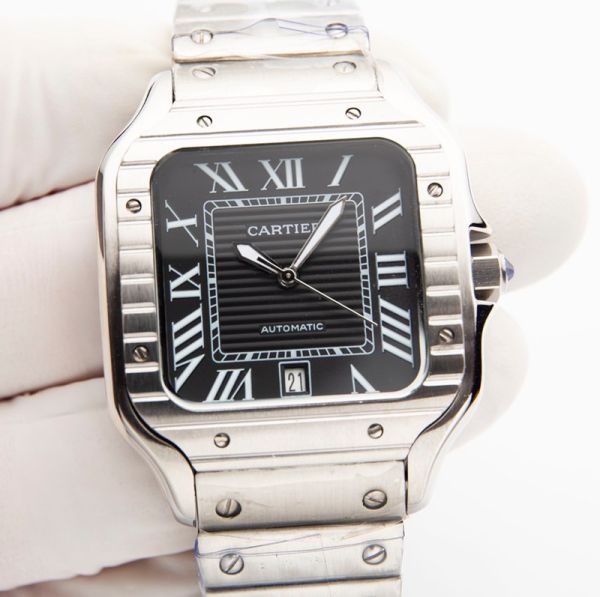Best Edition With 8215 Automatic Movement Cartier Santos Silver Stainless Steel Strap Black/White Dial Men Square Watch