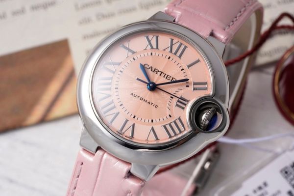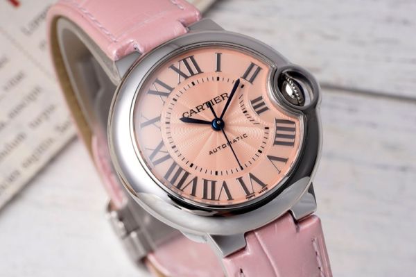 Ballon Bleu de Cartier 33*10MM Stainless Steel NH05 Movement Pink Bracelet Silver Bezel Watch replica watches legal in the USA