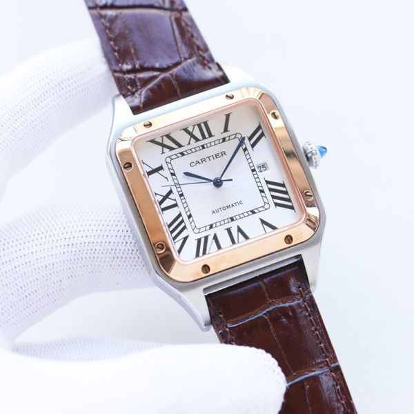 Cartier Santos Watch Dumont 8215 Movement 39.5MM In Width Silver/Rose Gold Bezel Square Men Watch