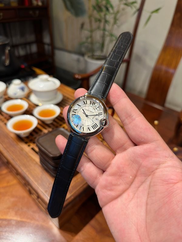 Cartier serial number check Ballon Bleu 42*13MM Stainless Steel 2892 Movement Black Leather Strap Men Watch